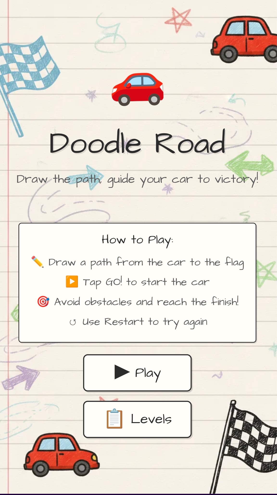 Doodle Road é um jogo casual em 2D onde você desenha a estrada para um carro percorrer do início ao fim. Supere diversos obstáculos projetando seu caminho de forma inteligente usando mecânicas de desenho simples.